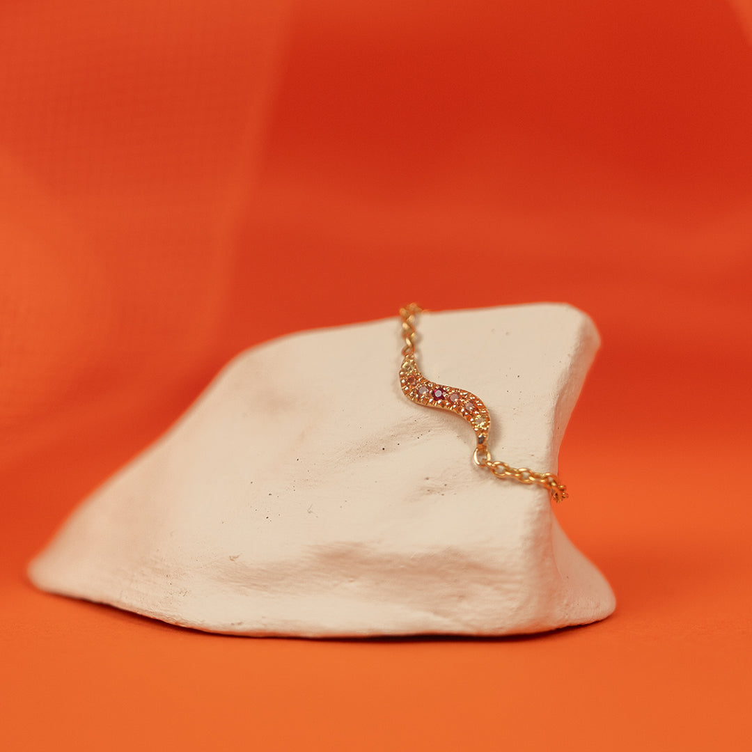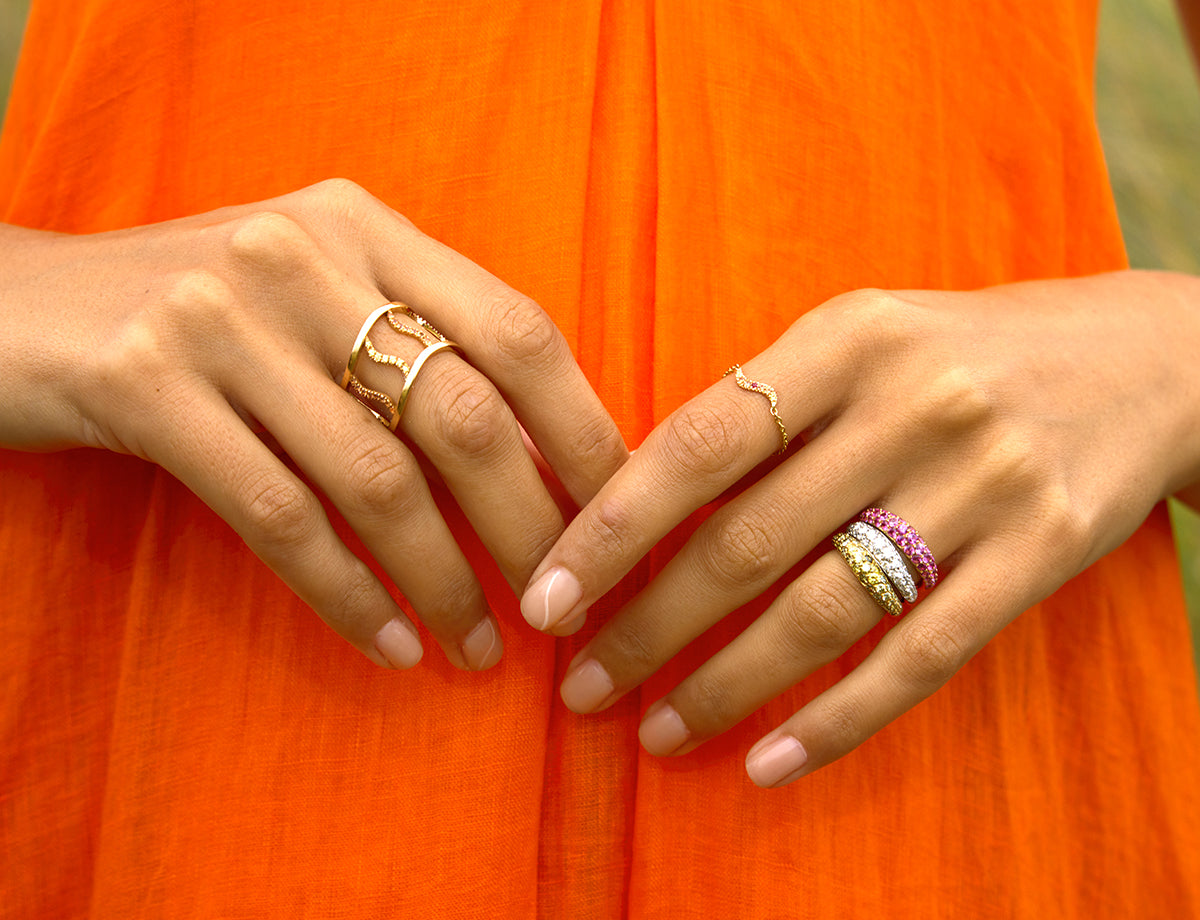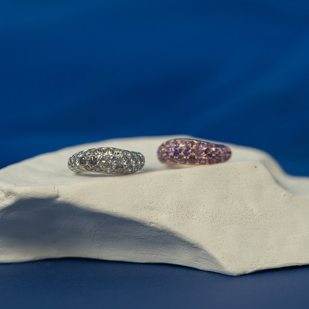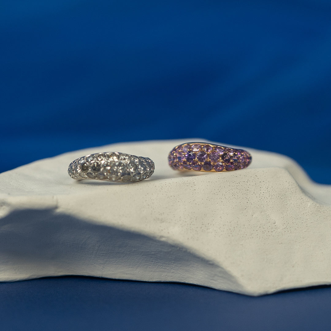 Chaque bijou de la collection La Mèr.e est créé sur-mesure car les pierres de couleurs de pavage nous offrent la possibilité de créer mille et une combinaisons.