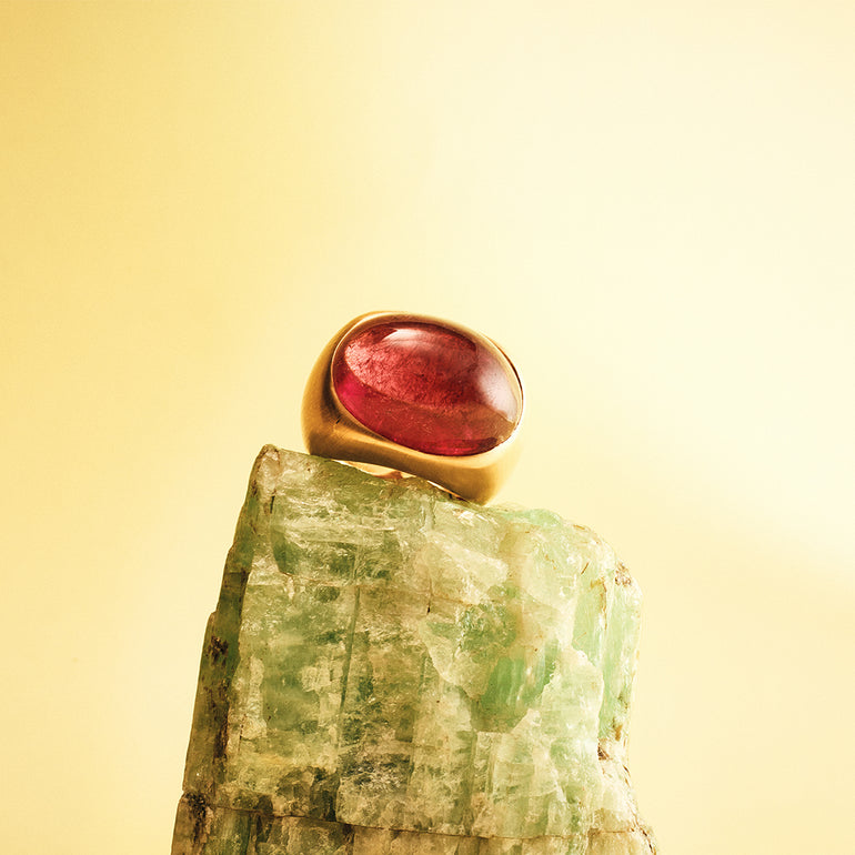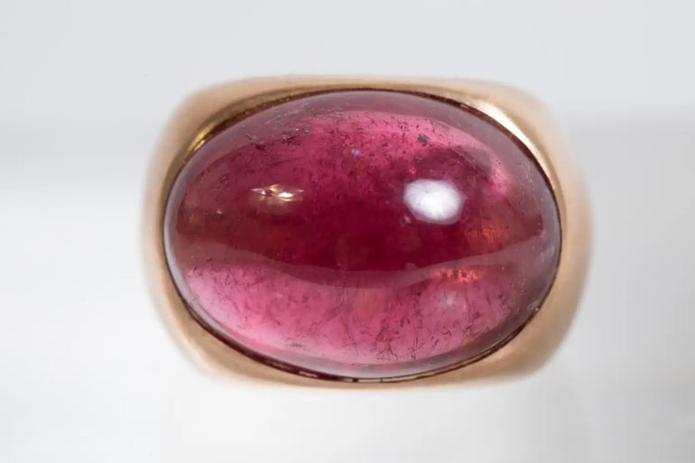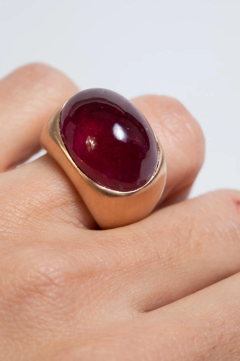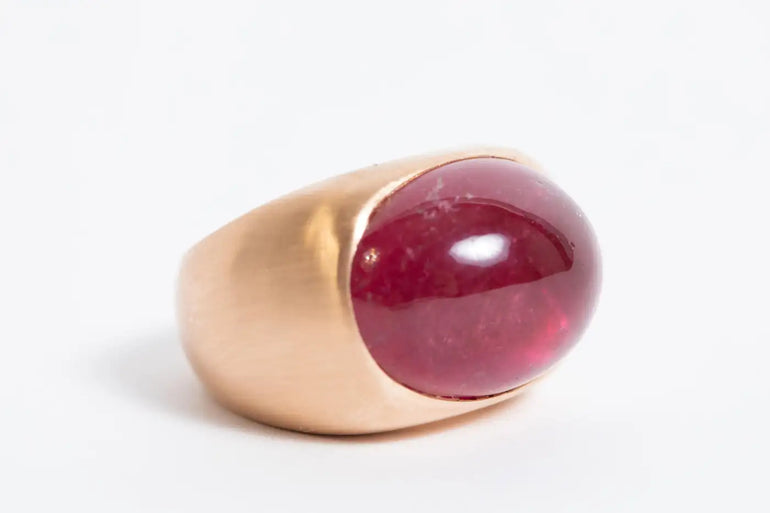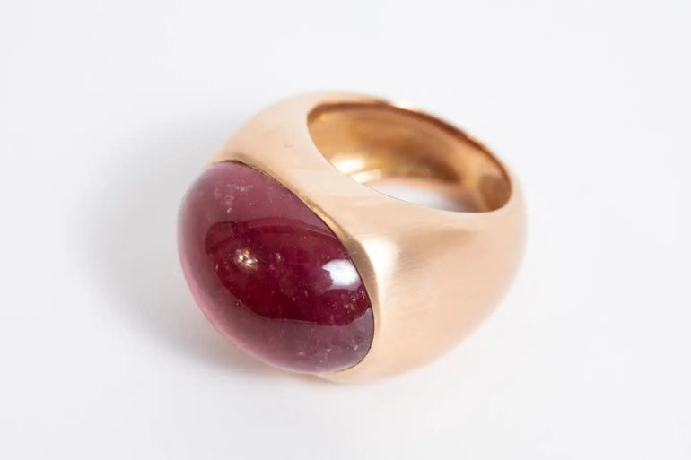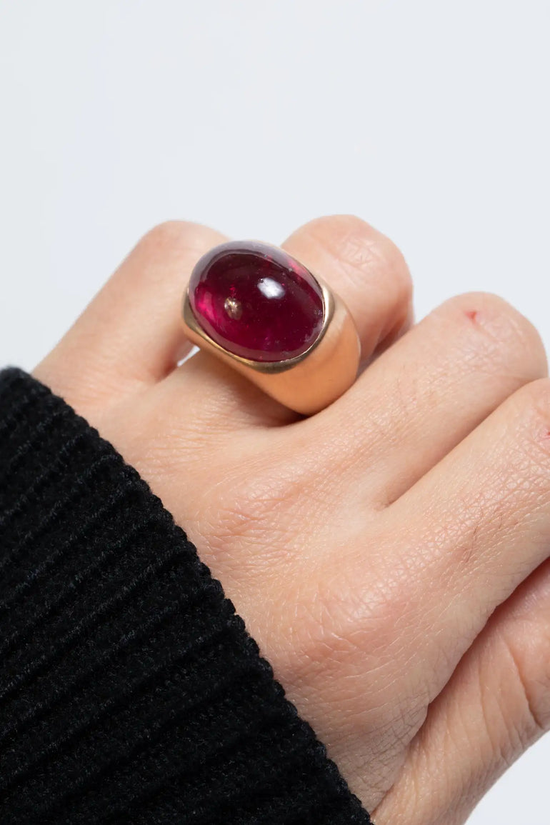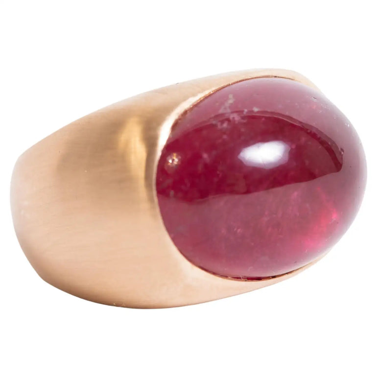 Bague boule en or rose 18 carats (750 millièmes) sertie d'une magnifique tourmaline cabochon rose (rubellite).